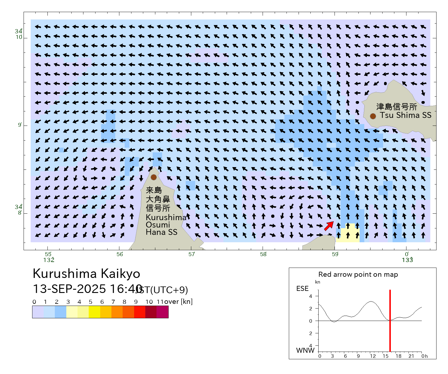 クリックするとその場所の当日の主流向分速曲線が参照できます。