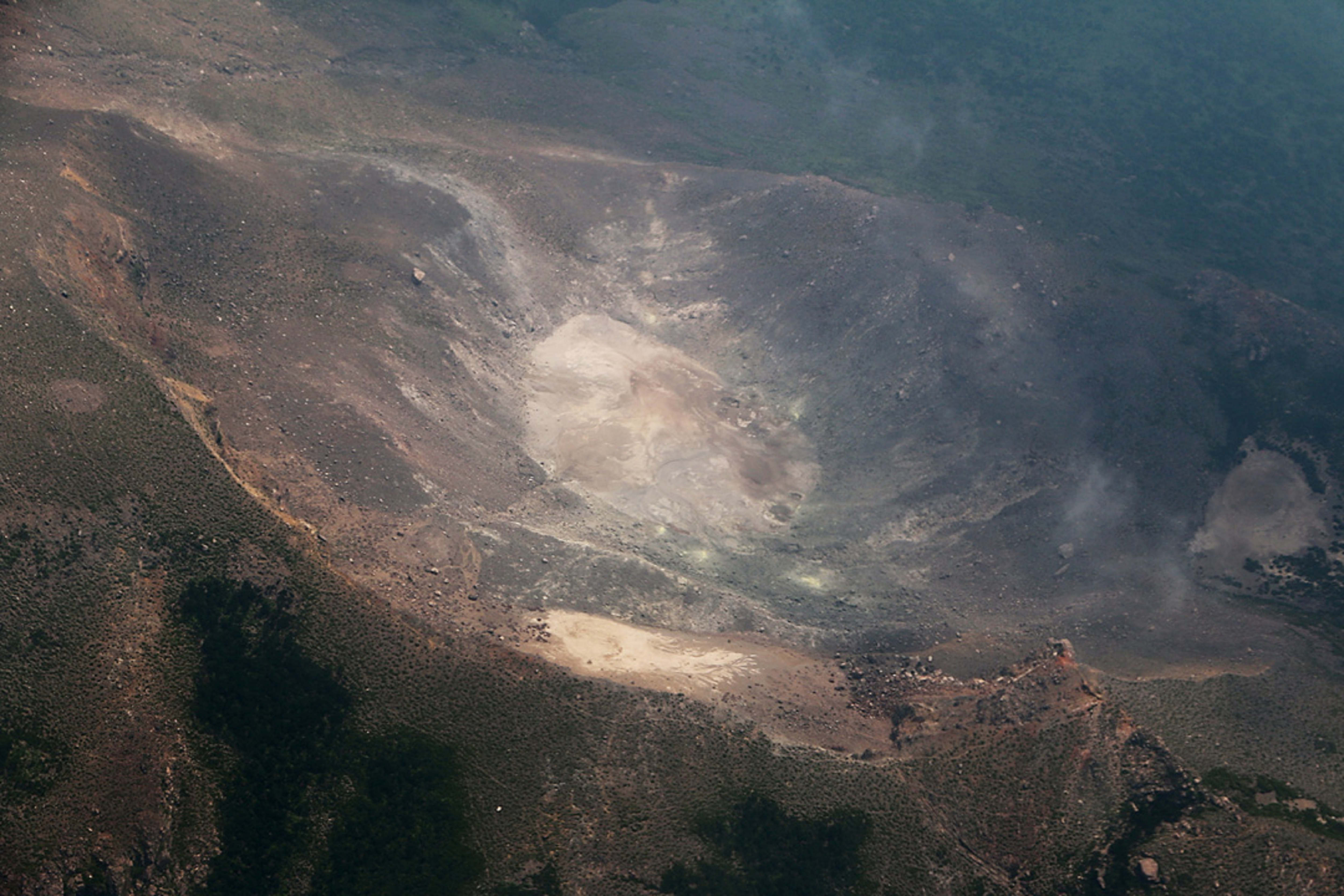 古岳火口(左)、割れ目火口(中央下)及び新岳火口(右)